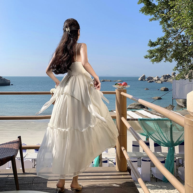 【SummerVacationシリーズ】ワンピース リゾート風 花飾り 清新 旅行 S M L