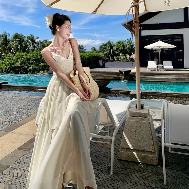 【SummerVacationシリーズ】ワンピース リゾート風 気質溢れる ベージュ S M L