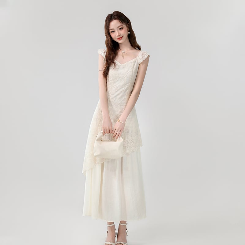 ワンピース レース エレガント デート 気質溢れる ベージュ S M L XL
