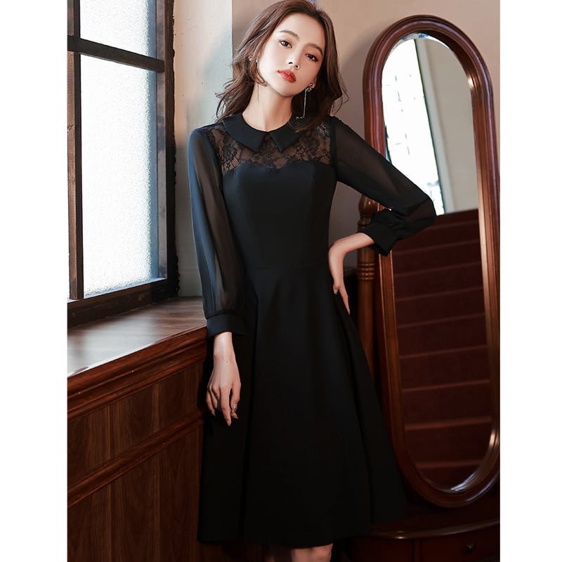 パーティードレス レース レトロ 折り襟デザイン ブラック S M L XL 2XL