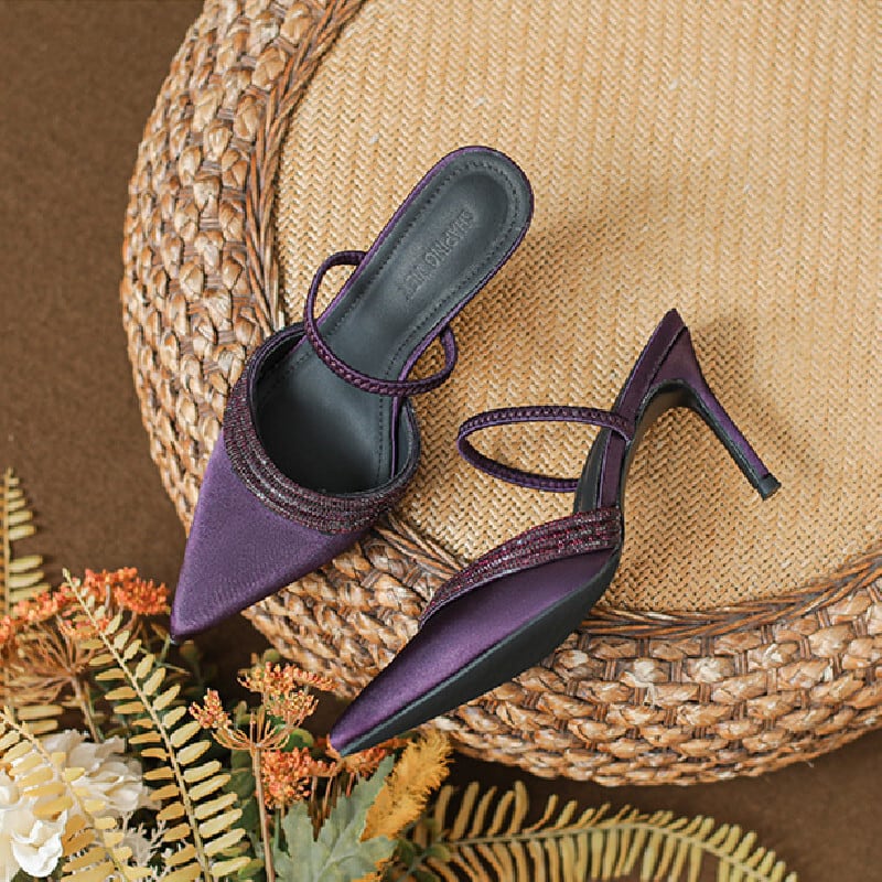 シューズ パンプス サテン 魅せられる セレブリティ パープル 8CM