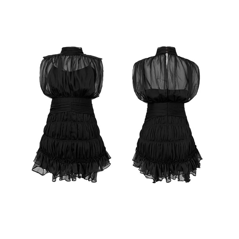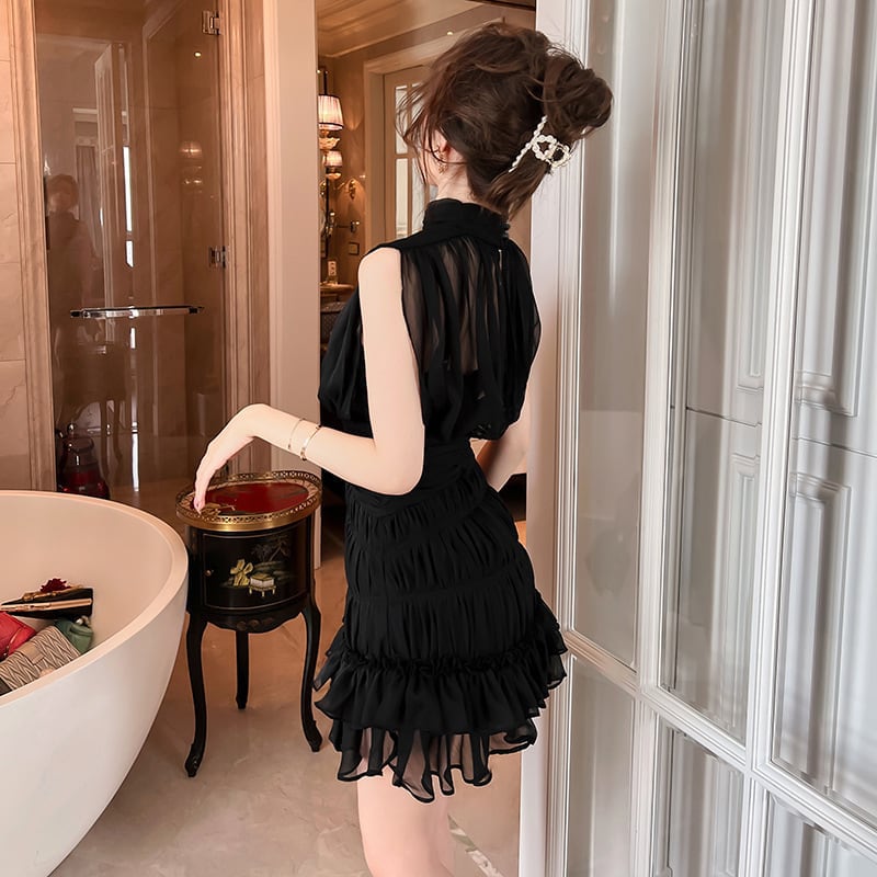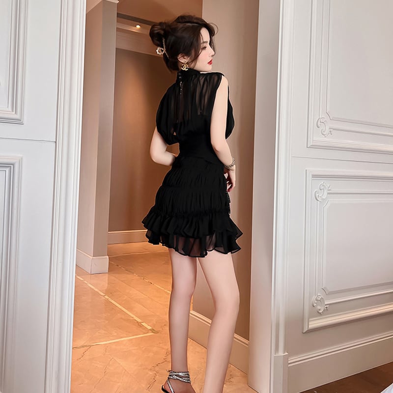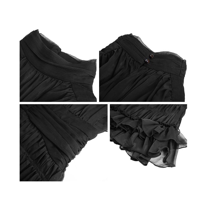 【夕暮薔薇シリーズ】ワンピース Aライン ペプラム ノースリーブ ブラック S M L XL