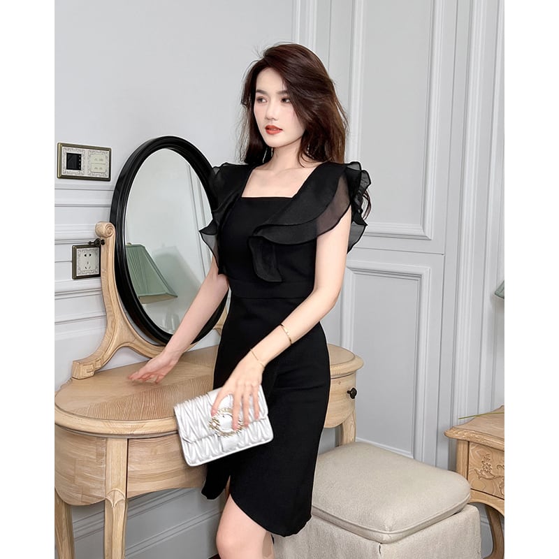 【夕暮薔薇シリーズ】ワンピース スクエアネック 無地 気質溢れる ブラック S M L XL 2XL
