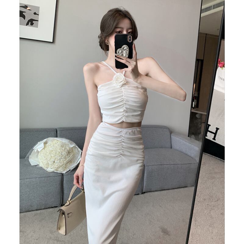 【CHERRYシリーズ】セットアップ トップス+スカート セクシー バックスリット ホワイト S M L