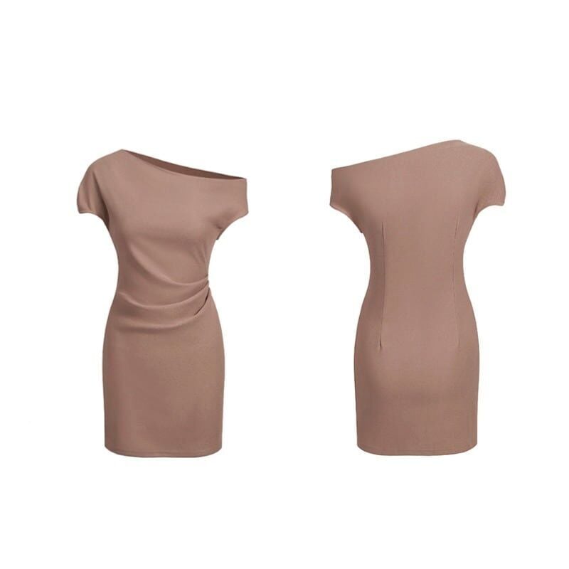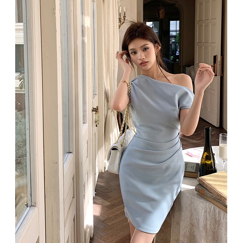 ワンピース 2色展開 オフショルダー 膝上 おしゃれ ブルー コーヒー色 S M L