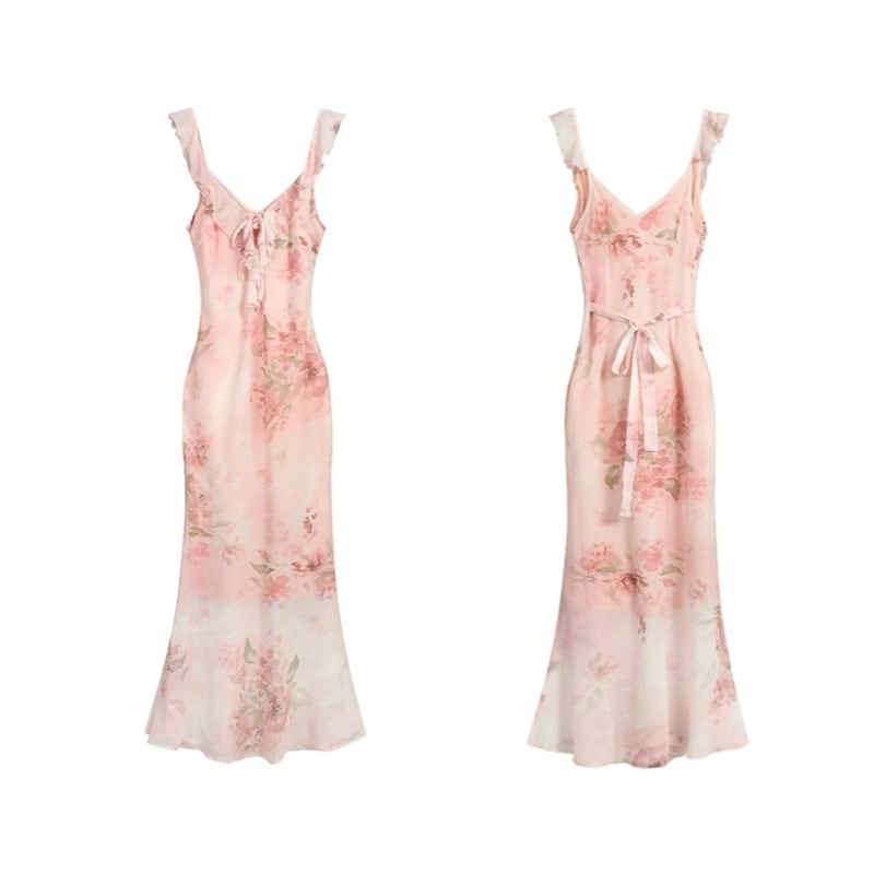ロングワンピース リゾート風 プリント 花柄 美人度アップ S M L