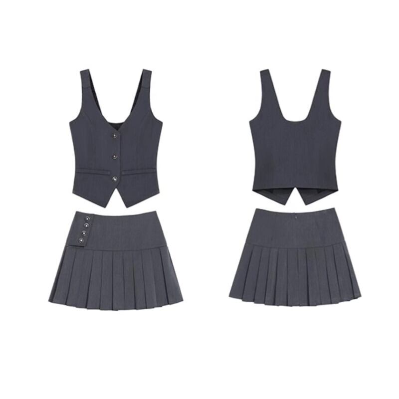セットアップ トップス+スカート シングルブレスト 気質溢れる ダークグレー S M L XL