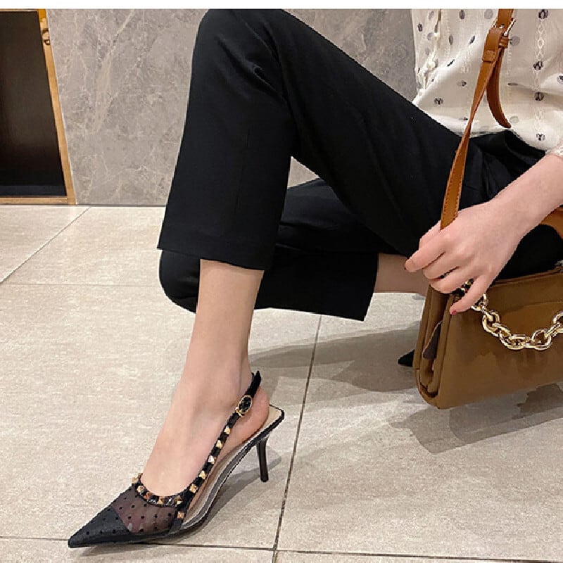 シューズ スタッズサンダル 2色展開 ドット柄 ブラック ベージュ 7CM