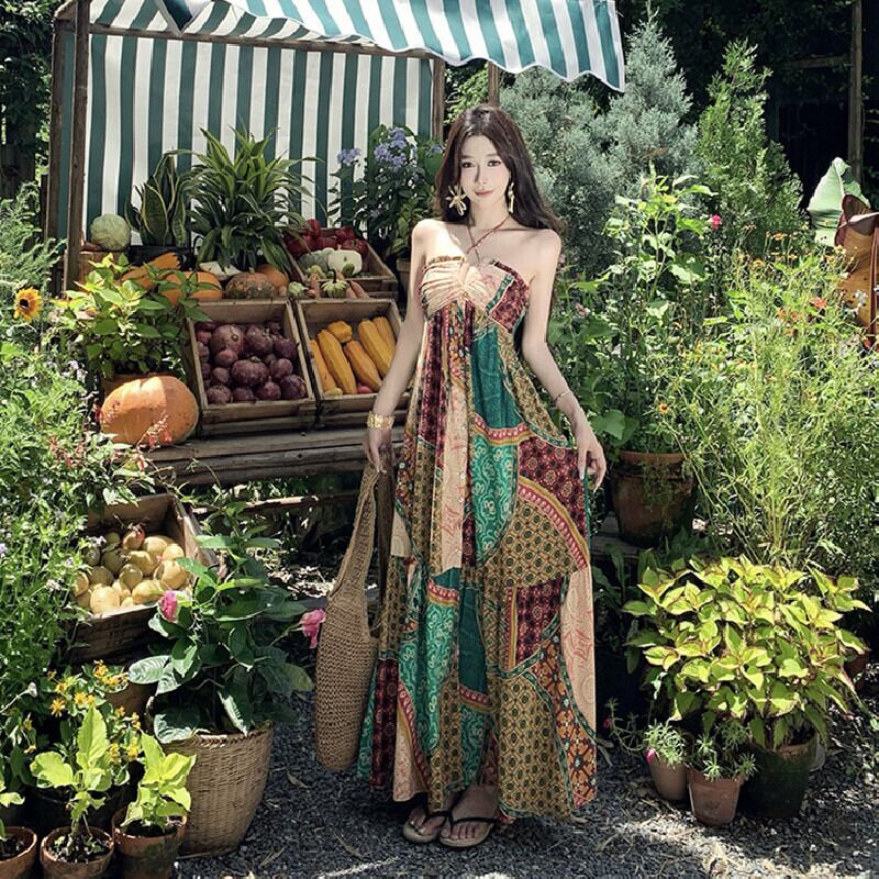 【SummerVacationシリーズ】ワンピース ボヘミアン 旅行 視線集中 S M L