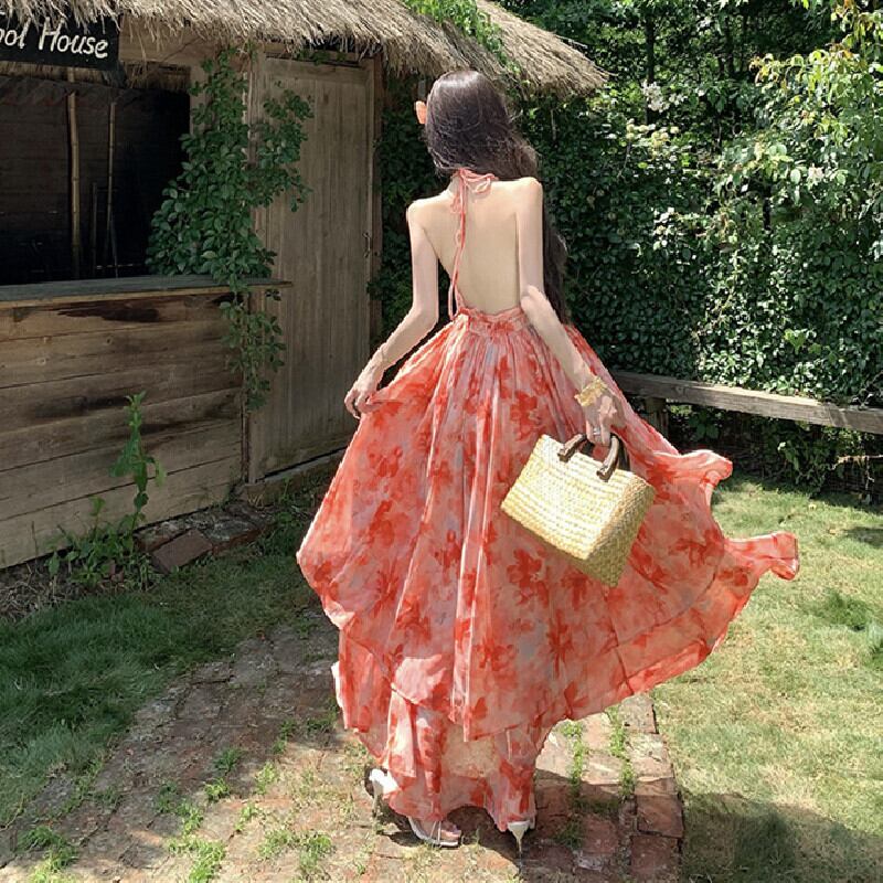 【SummerVacationシリーズ】ワンピース バックレス 鮮やか 撮影着 S M L
