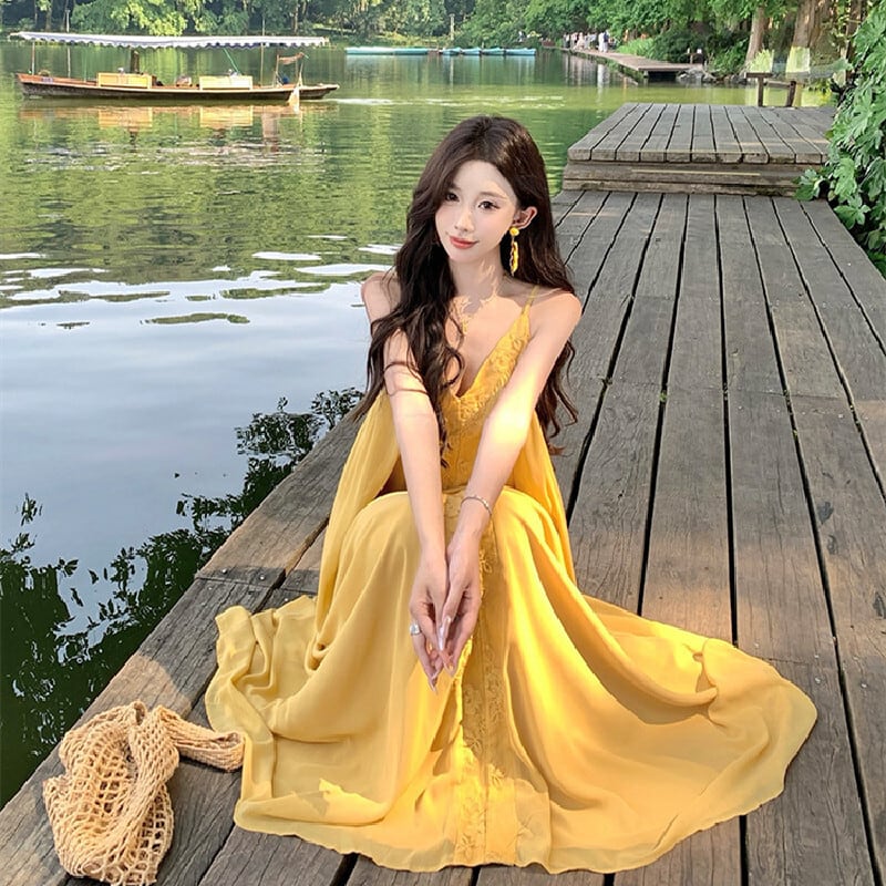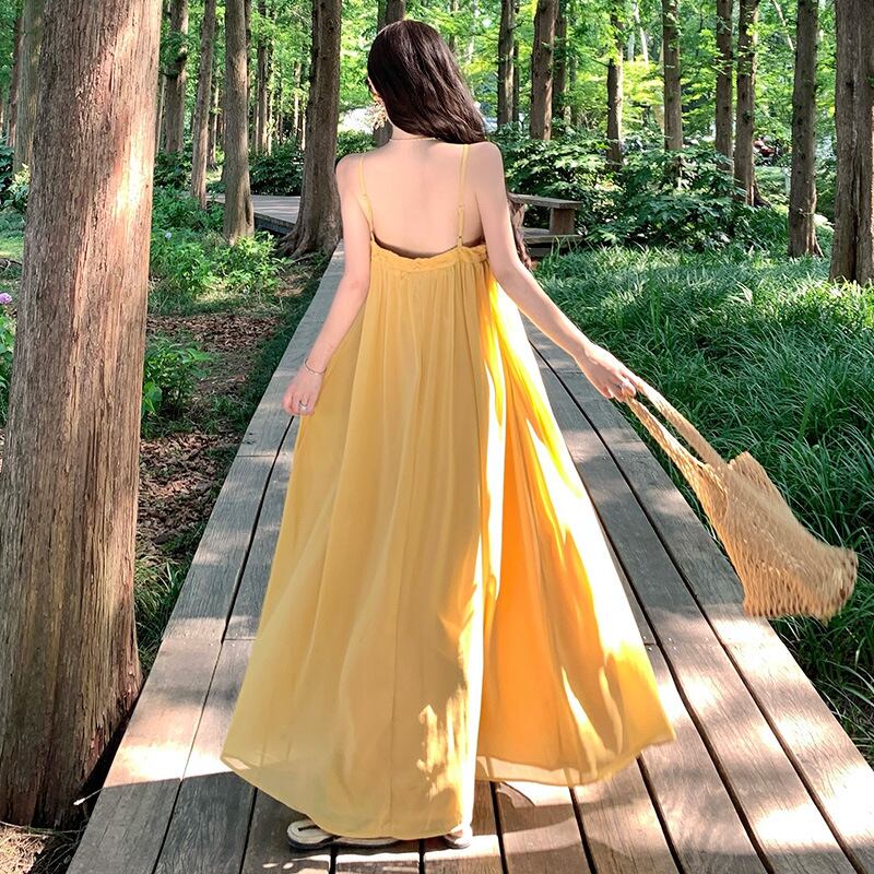 【SummerVacationシリーズ】ワンピース ゆるい バックレス イエロー S M L