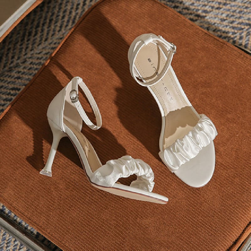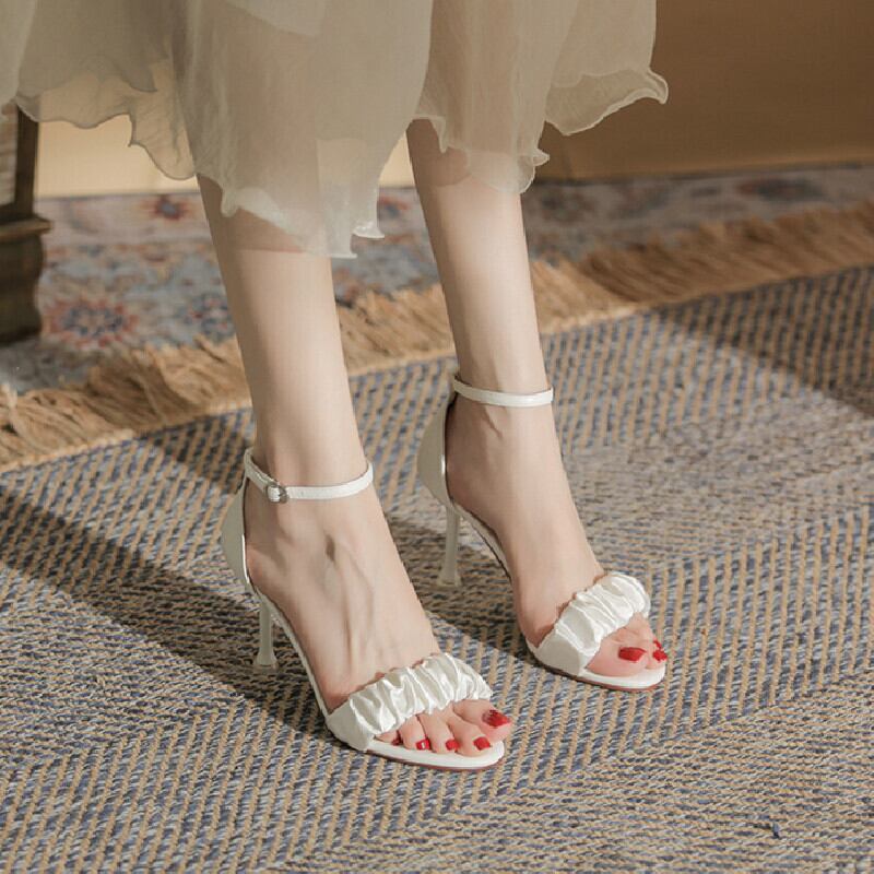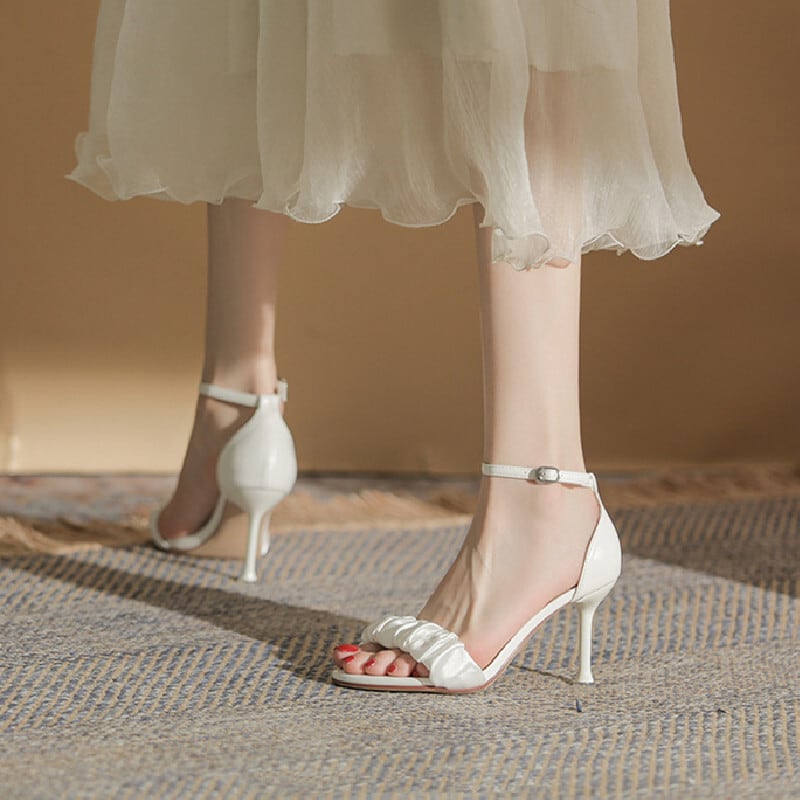 シューズ サンダル 2色展開 オープントゥ ストラップ ホワイト ブラック 8CM