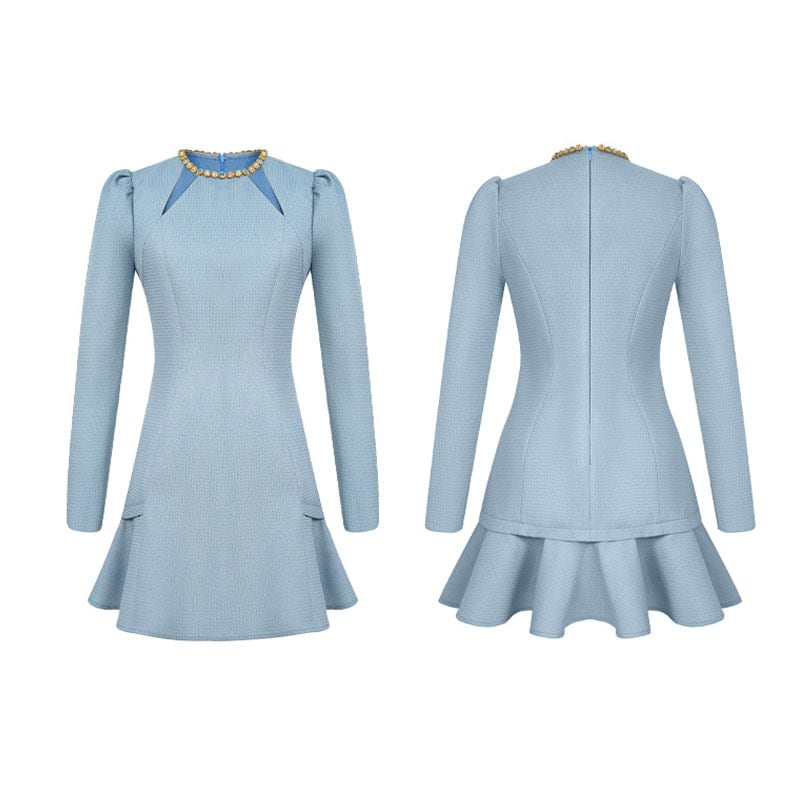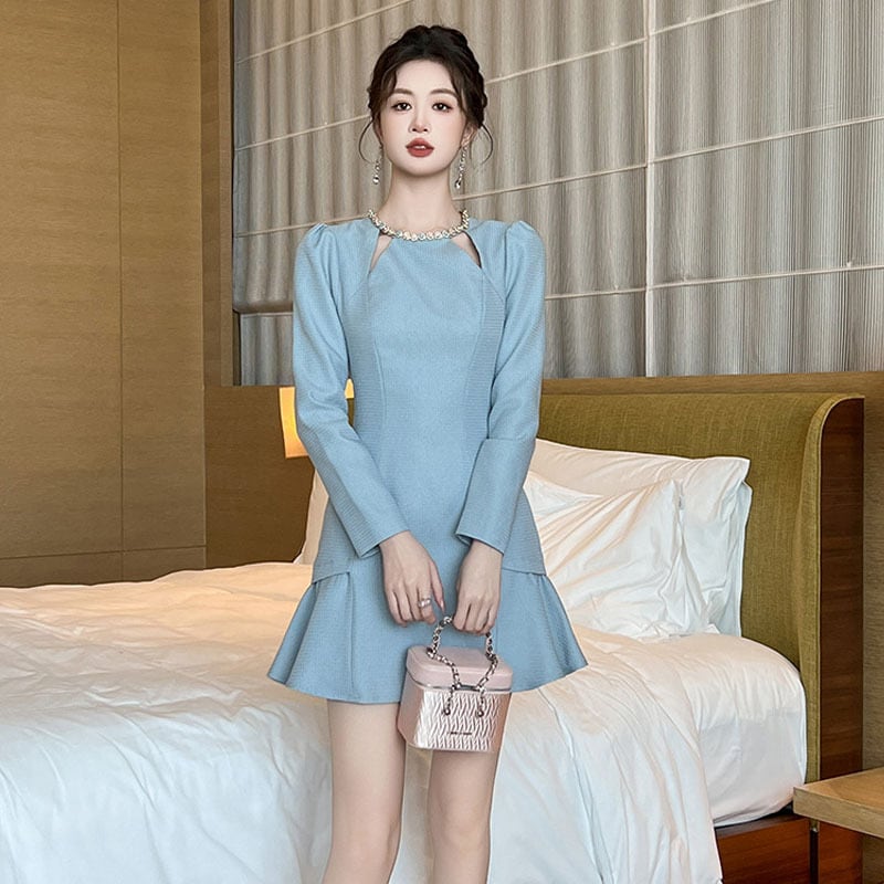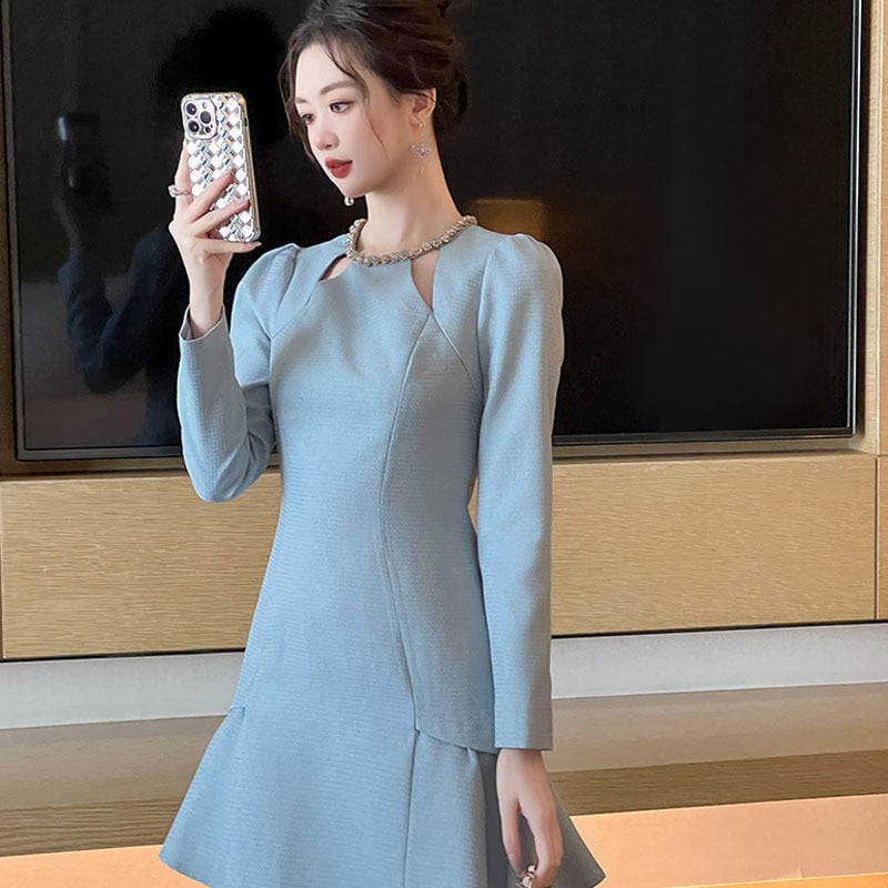 【在庫処分 値下げセール 】S1点残り✿ワンピース✿ デザイン感 気質溢れる 膝上 長袖 ブルー