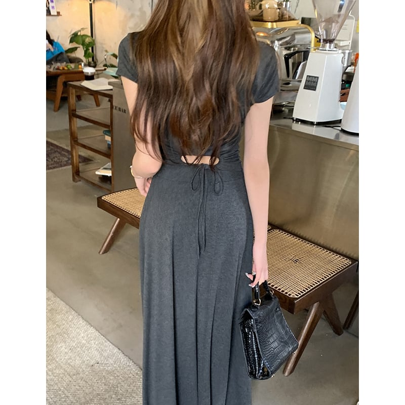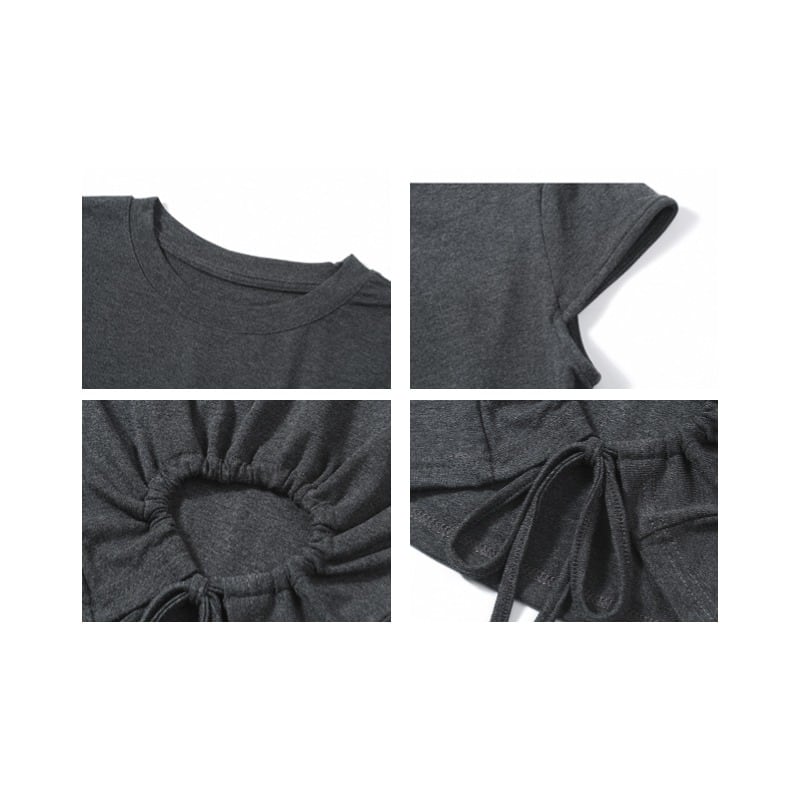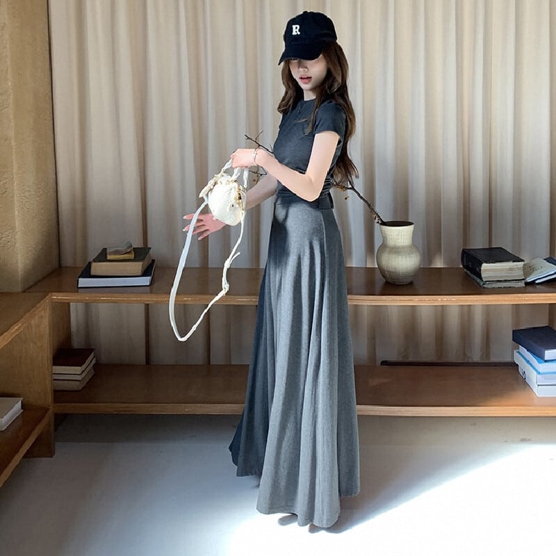 セットアップ トップス+スカート カジュアル 無地 ダークグレー ブラック S M L