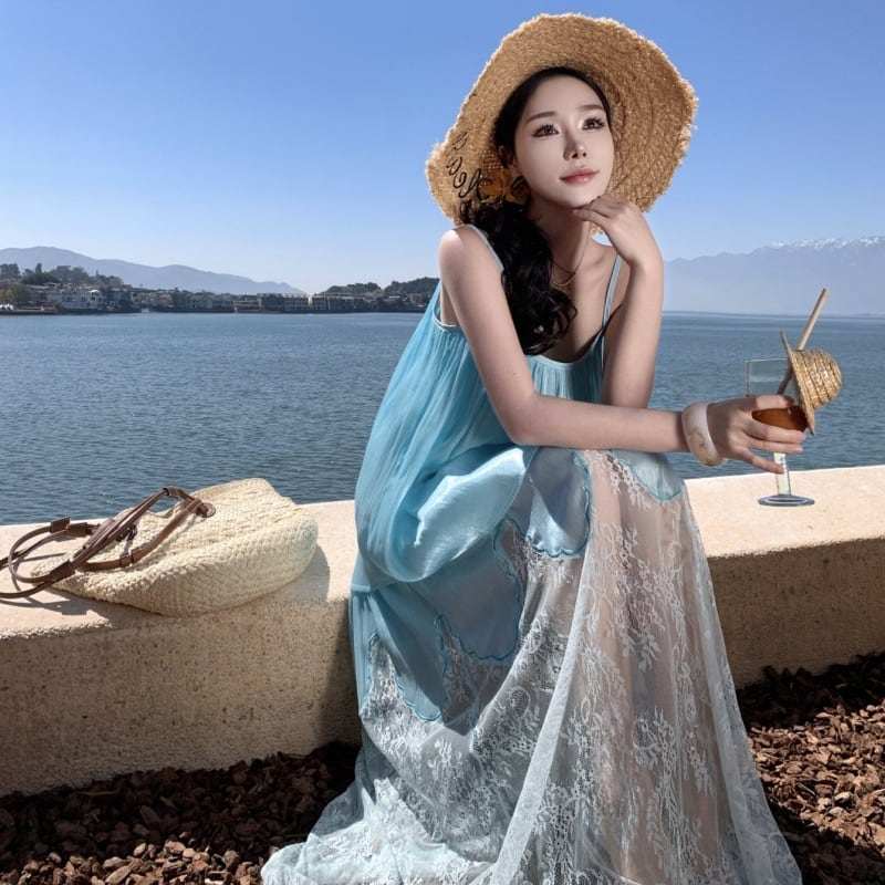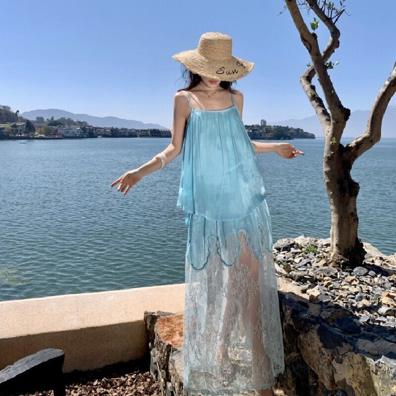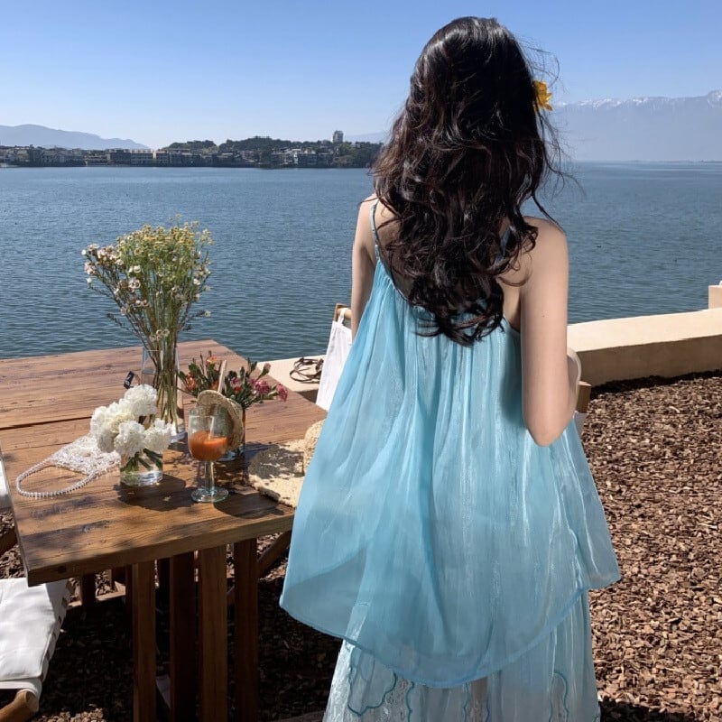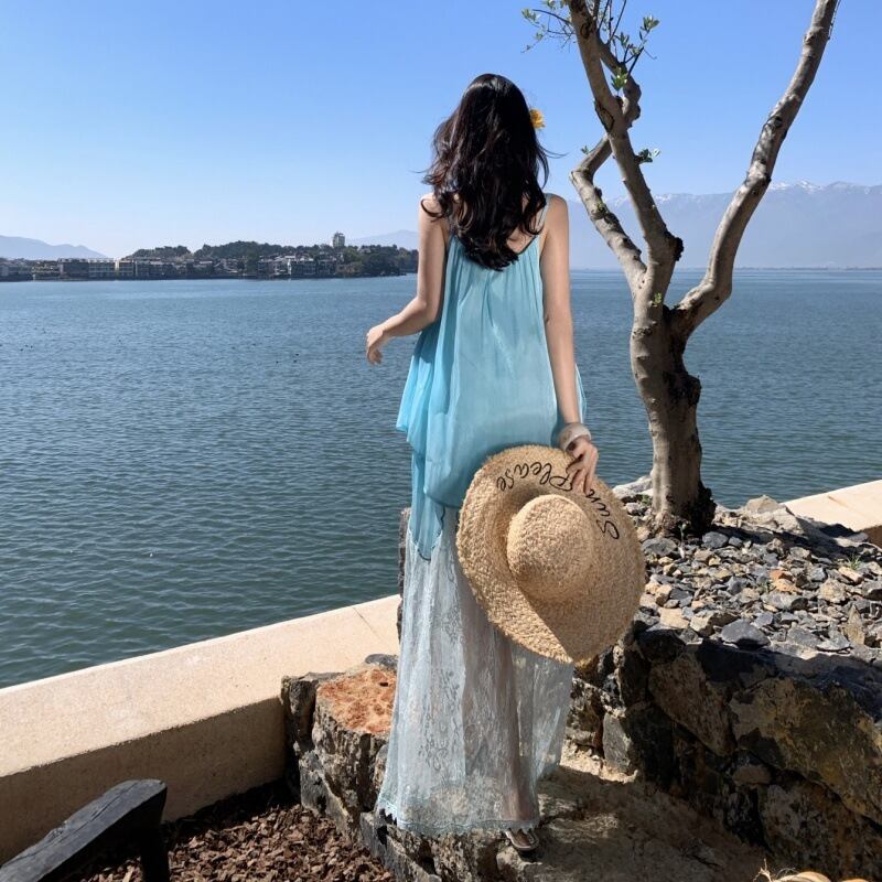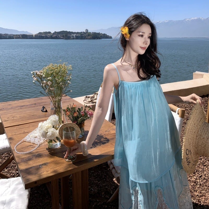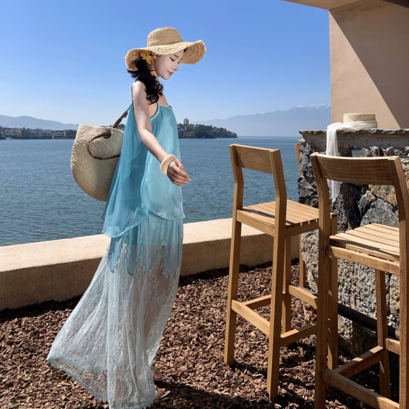 【SummerVacationシリーズ】セットアップ 清新 レース 気質溢れる ブルー S M L