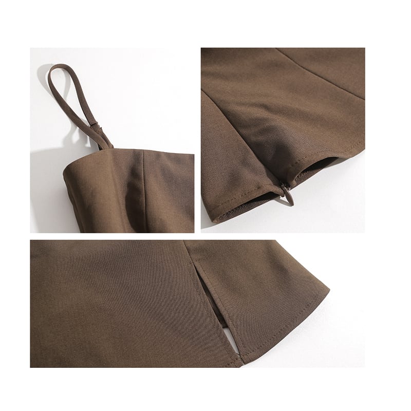 セットアップ トップス+スカート 無地 細見え効果抜群 コーヒー色 S M L