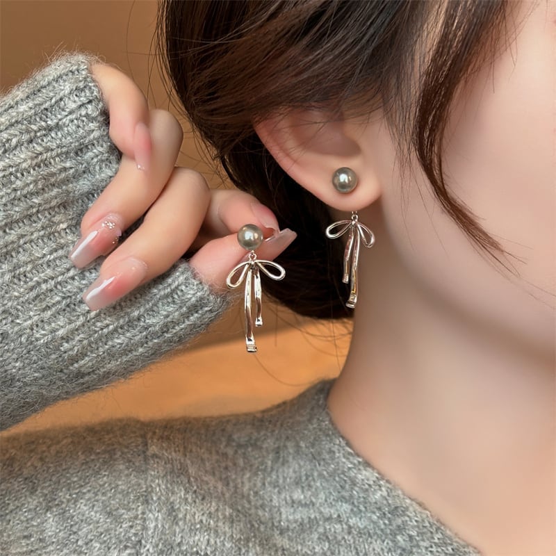 アクセサリー ピアス パール系 ツヤツヤ フェミニン グレー シルバー色