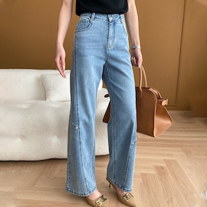 ボトムス デニムパンツ ジーンズ ハイウエスト ワイド ライトブルー