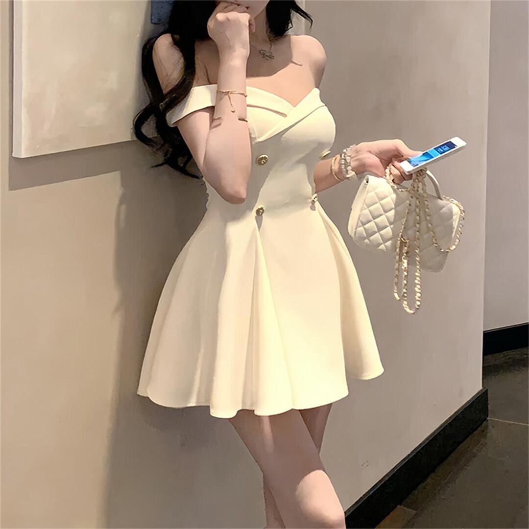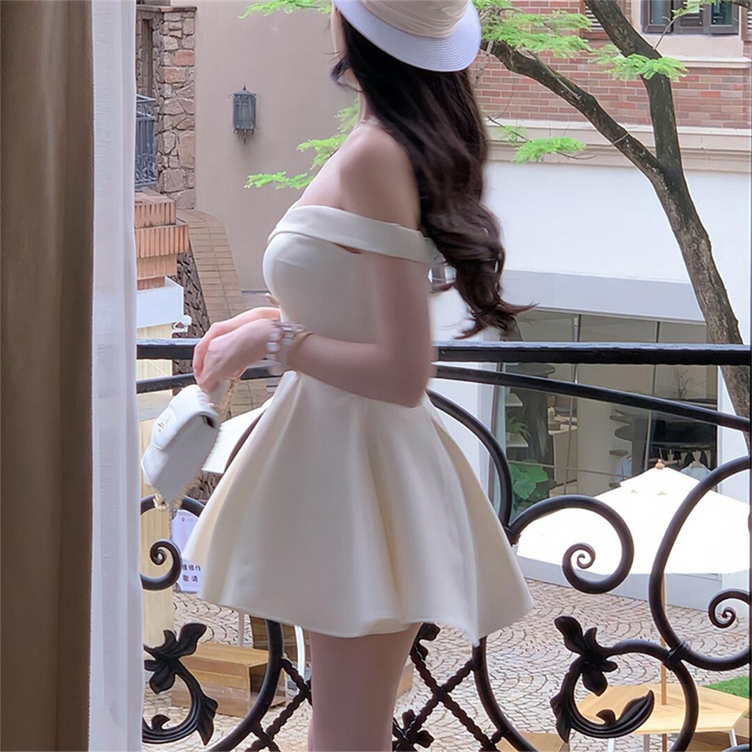 ワンピース ボートネック 無地 Aライン ホワイト S M L XL