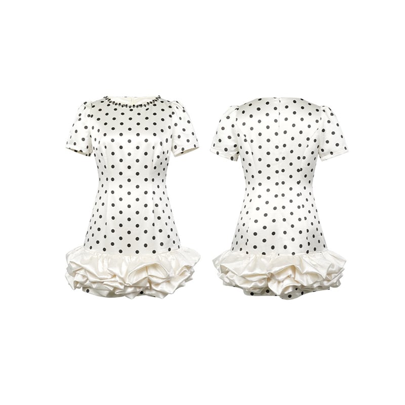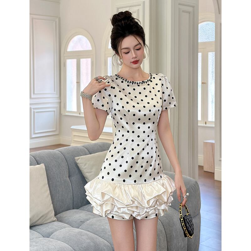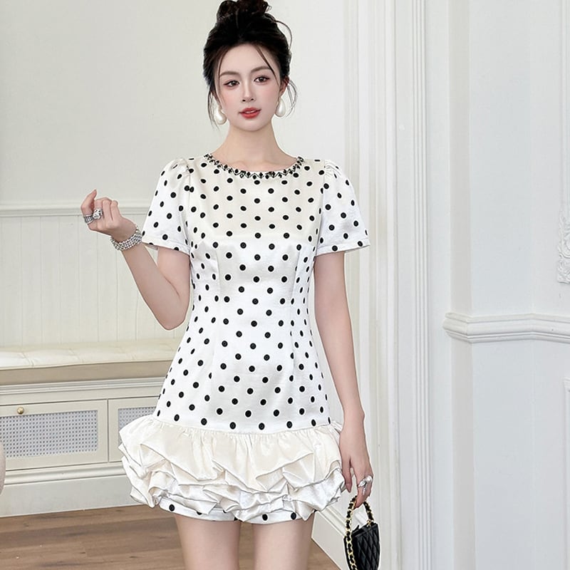 【夕暮薔薇シリーズ】ワンピース ドット柄 レトロ 水玉模様 デザイン感 S M L XL