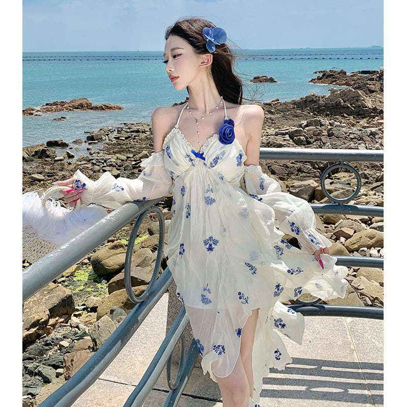 【SummerVacationシリーズ】ワンピース 花柄 ペプラム オフショルダー S M L