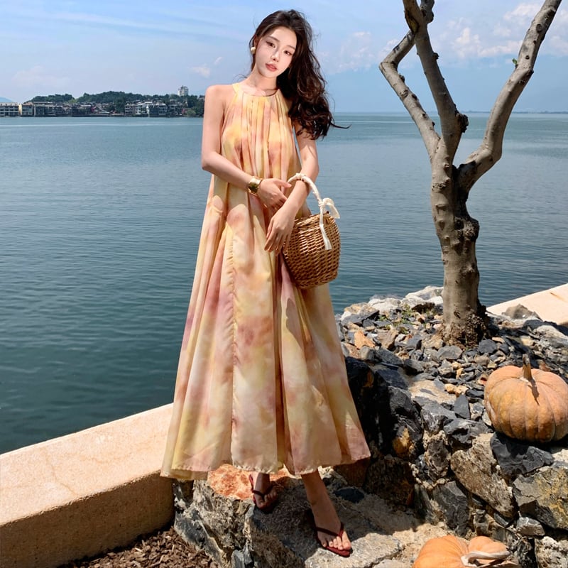【SummerVacationシリーズ】ワンピース ノースリーブ 配色 ゆったり S M L