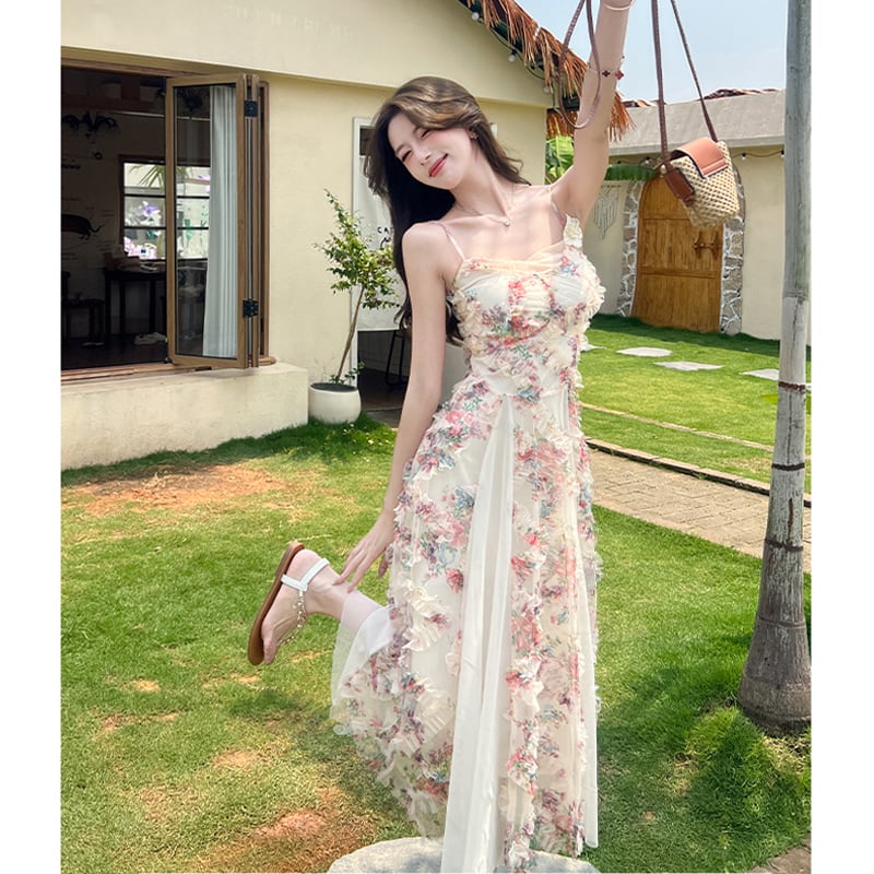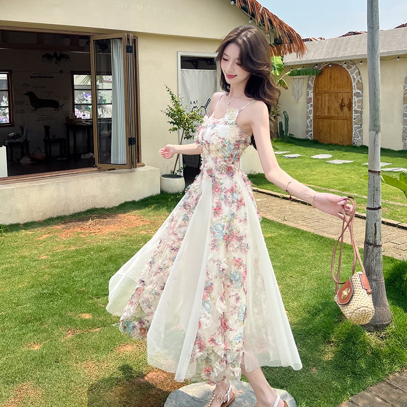 【CHERRYシリーズ】ワンピース 花柄 メッシュ 女っぽさが漂う 鮮やか S M L XL