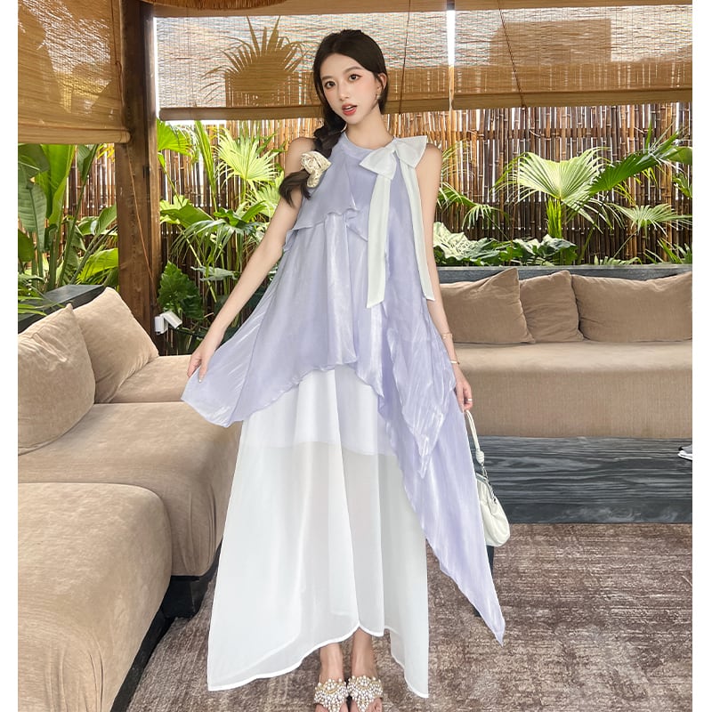 【CHERRYシリーズ】ワンピース 3色展開 ノースリーブ ゆったり ブルー ベージュ パープル S M L