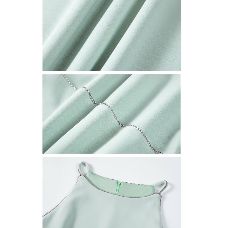 ワンピース ノースリーブ ラインストーン フランス風 ライトグリーン S M L