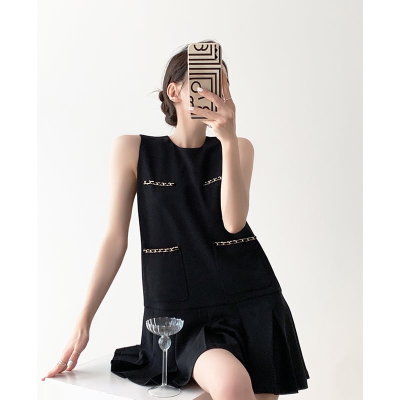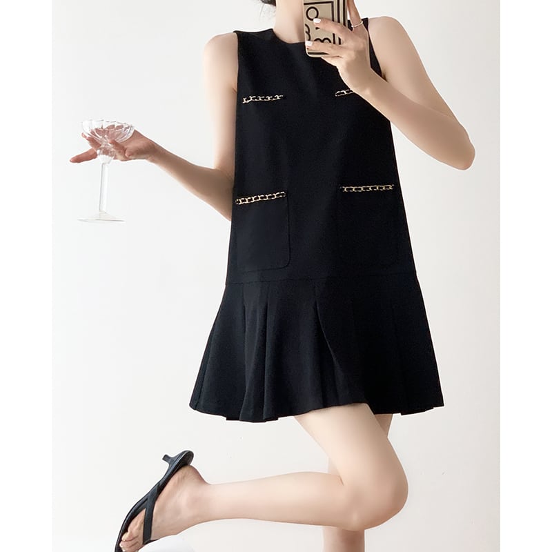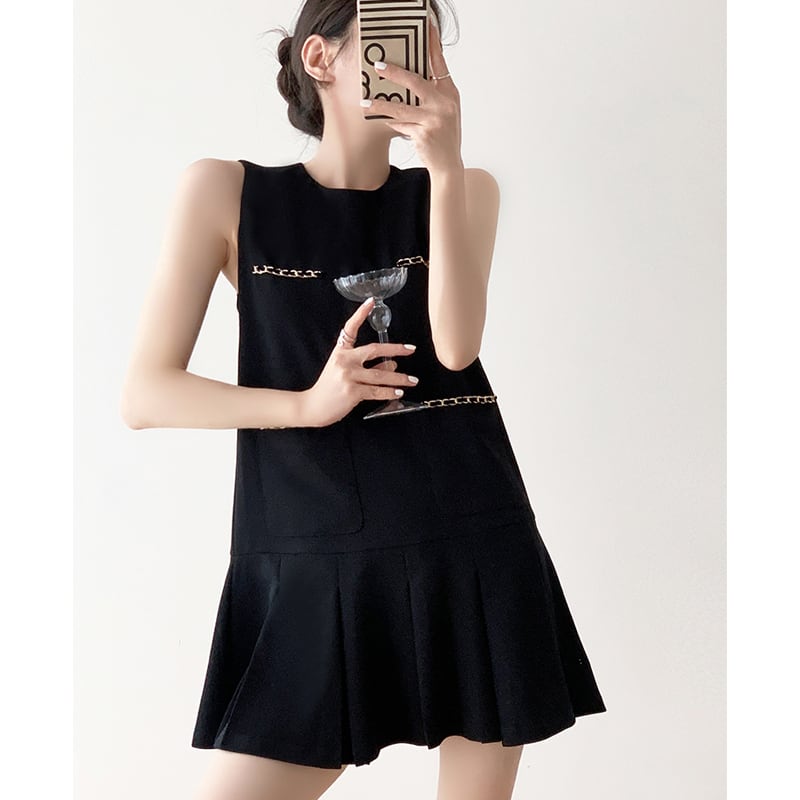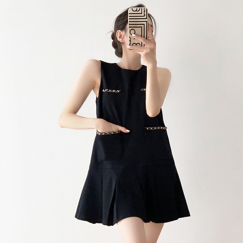 ワンピース ノースリーブ 気質満点 ゆったり ブラック S M L