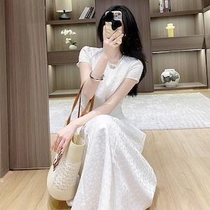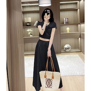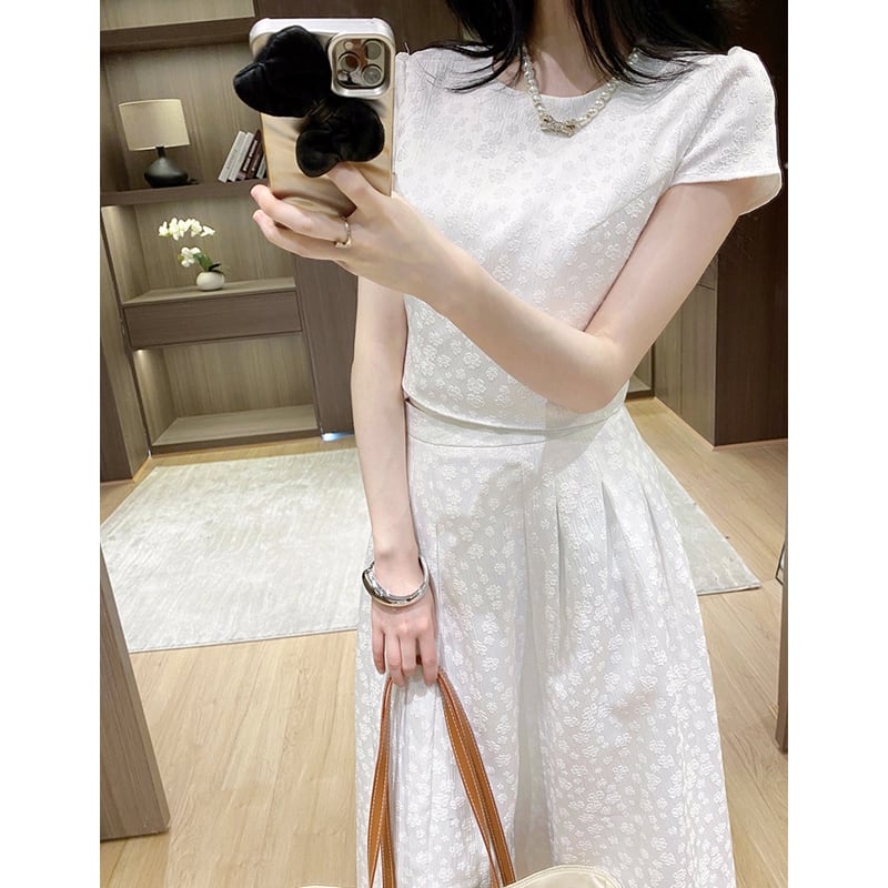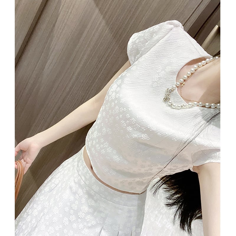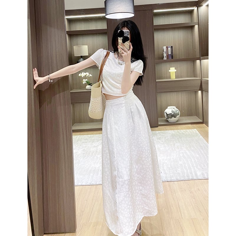 【RIMIシリーズ】セットアップ トップス+スカート ラウンドネック 花柄 ホワイト ブラック S M L XL