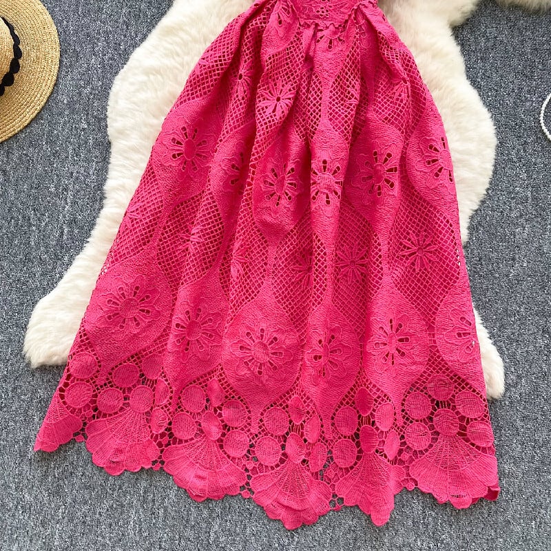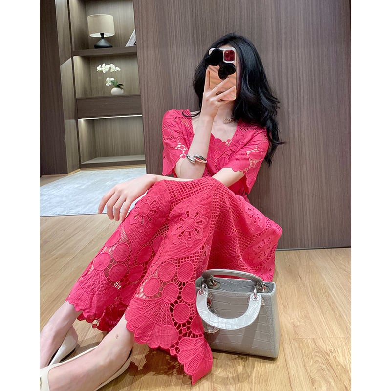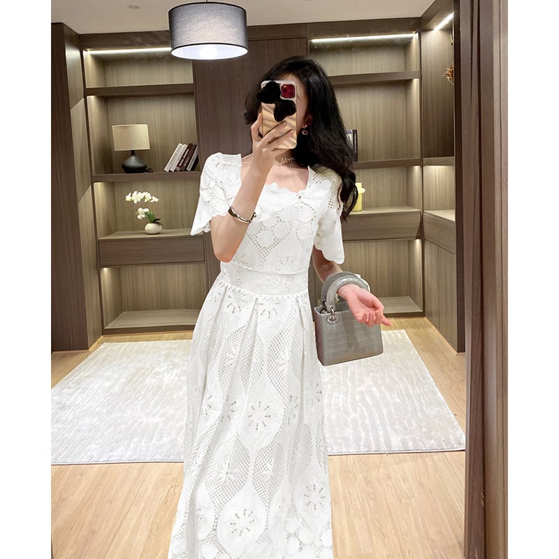 【RIMIシリーズ】ワンピース 3色展開 レース スクエアネック ローズ色 ホワイト ブルー S M L XL 2XL