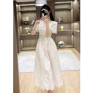 【RIMIシリーズ】ワンピース Vネック 刺繡 おしゃれ ベージュ S M L XL 2XL