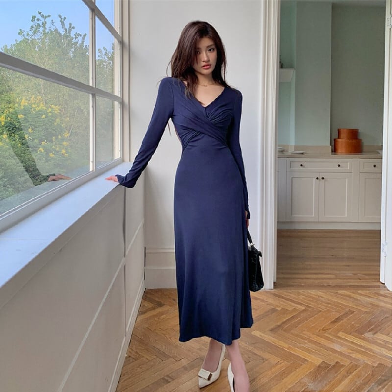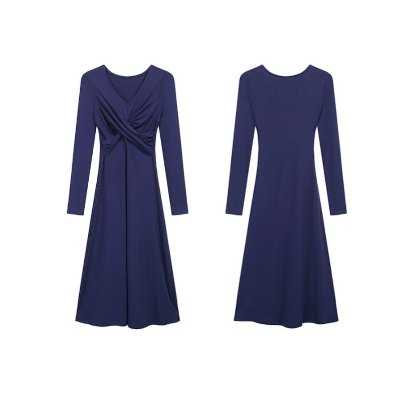 ✿2025秋新作✿ワンピース Vネック 無地 長袖 着まわし抜群 S M L