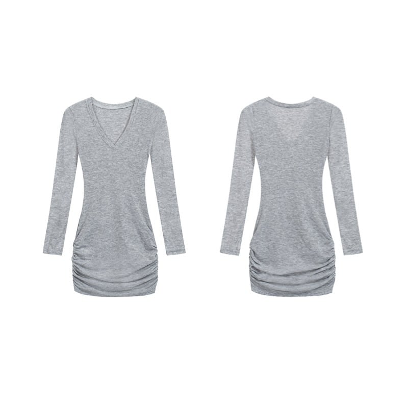 ✿2025秋新作✿ワンピース Vネック 膝上 無地 気質溢れる グレー S M L