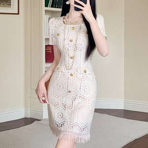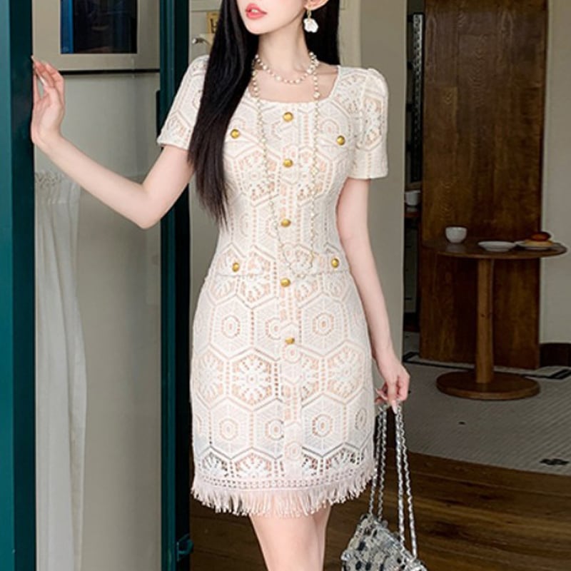 ワンピース スクエアネック レース フェミニン ベージュ S M L XL 2XL