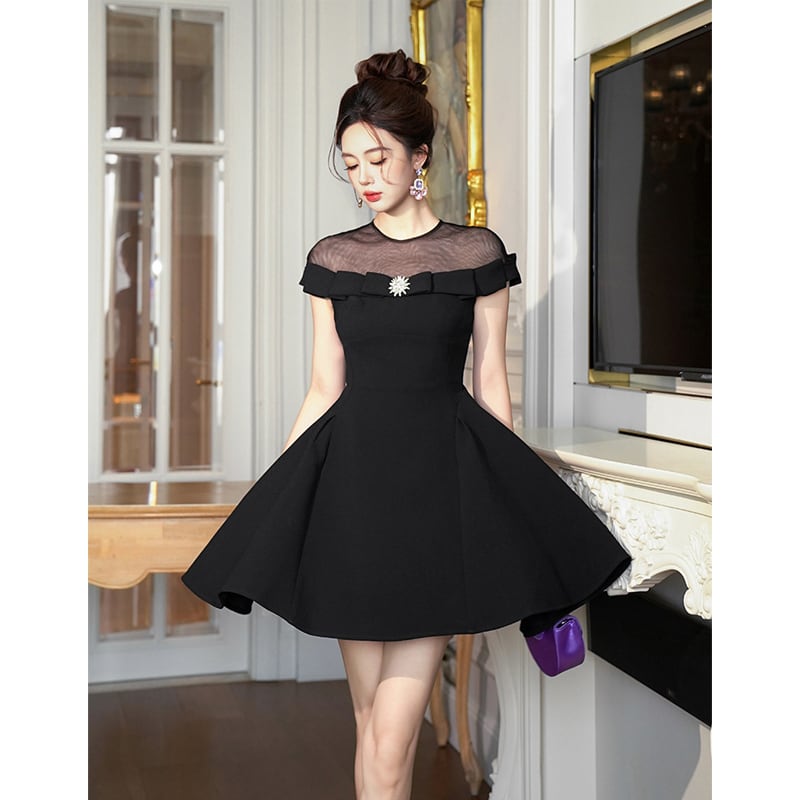【夕暮薔薇シリーズ】ワンピース ハイウエスト 流行兆し Aライン ブラック S M L XL