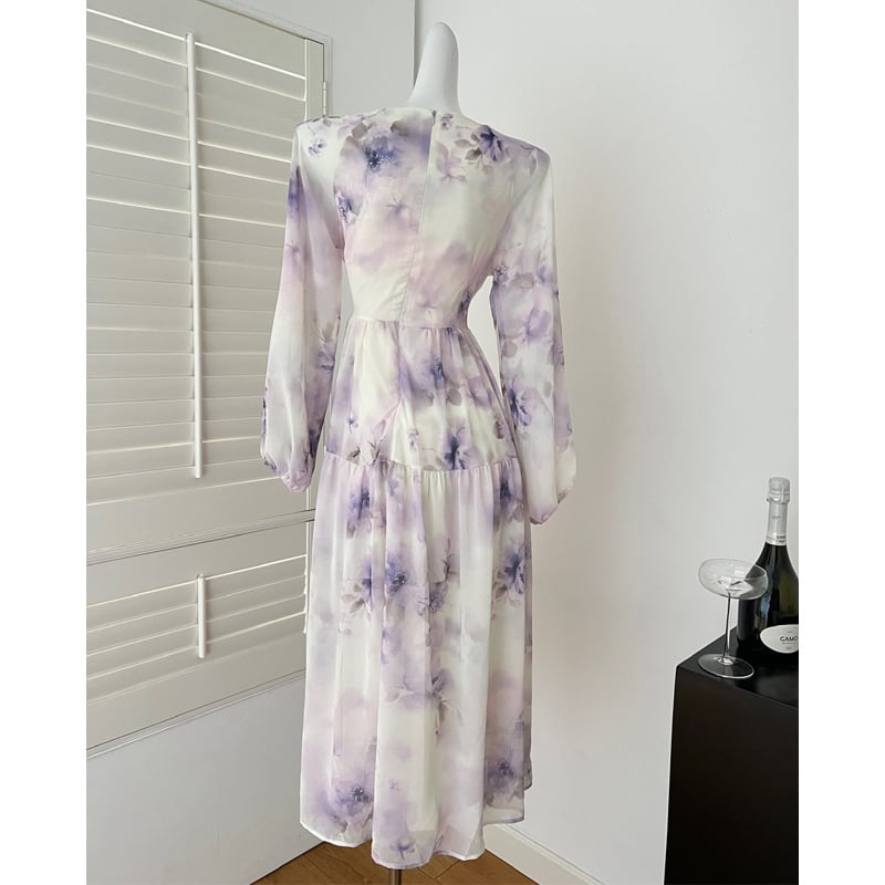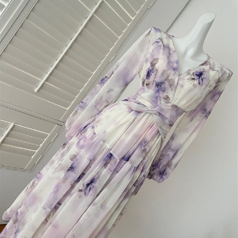 ワンピース 花柄 長袖 リゾート風 おしゃれ ロング丈 S M L