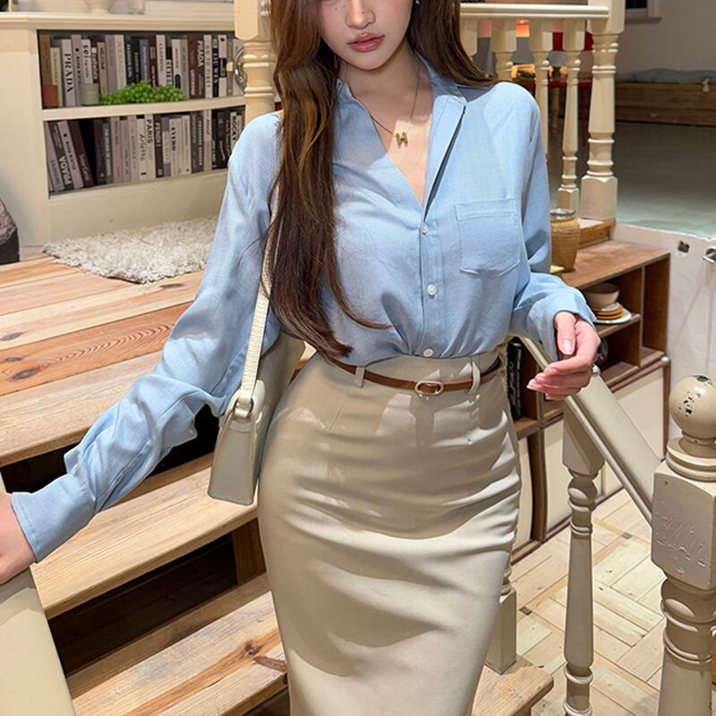 ✿2025秋新作✿トップス シャツ 長袖 気質満点 シングルブレスト 通勤 ブルー S M L
