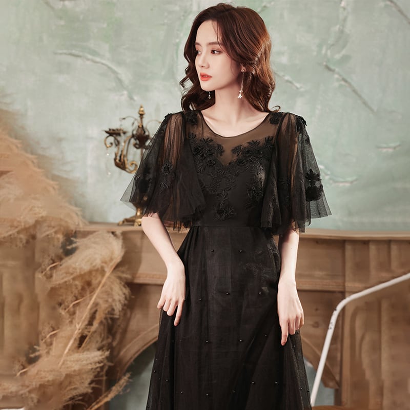 パーティードレス ラウンドネック 卒業式 ロング丈 ブラック S M L XL 2XL