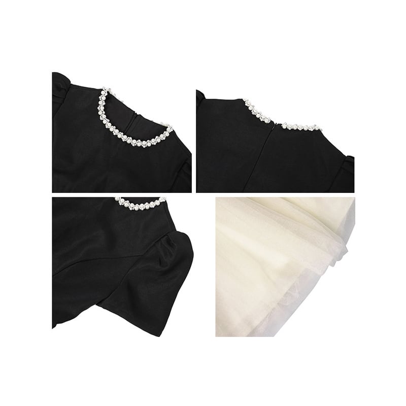 【夕暮薔薇シリーズ】ワンピース ラウンドネック 配色 ウエストシェイプ メッシュ S M L XL