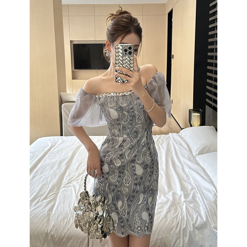 【夕暮薔薇シリーズ】ワンピース スパンコール キラキラ パーティー メッシュ S M L XL