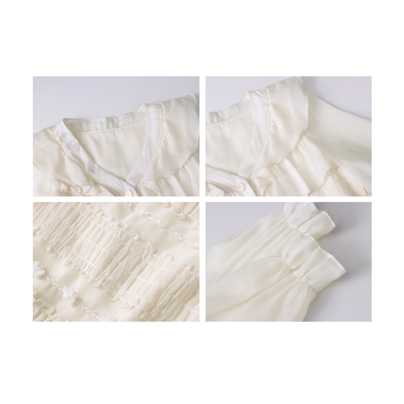 トップス シャツ Vネック 長袖 ペプラム シングルブレスト ベージュ S M L