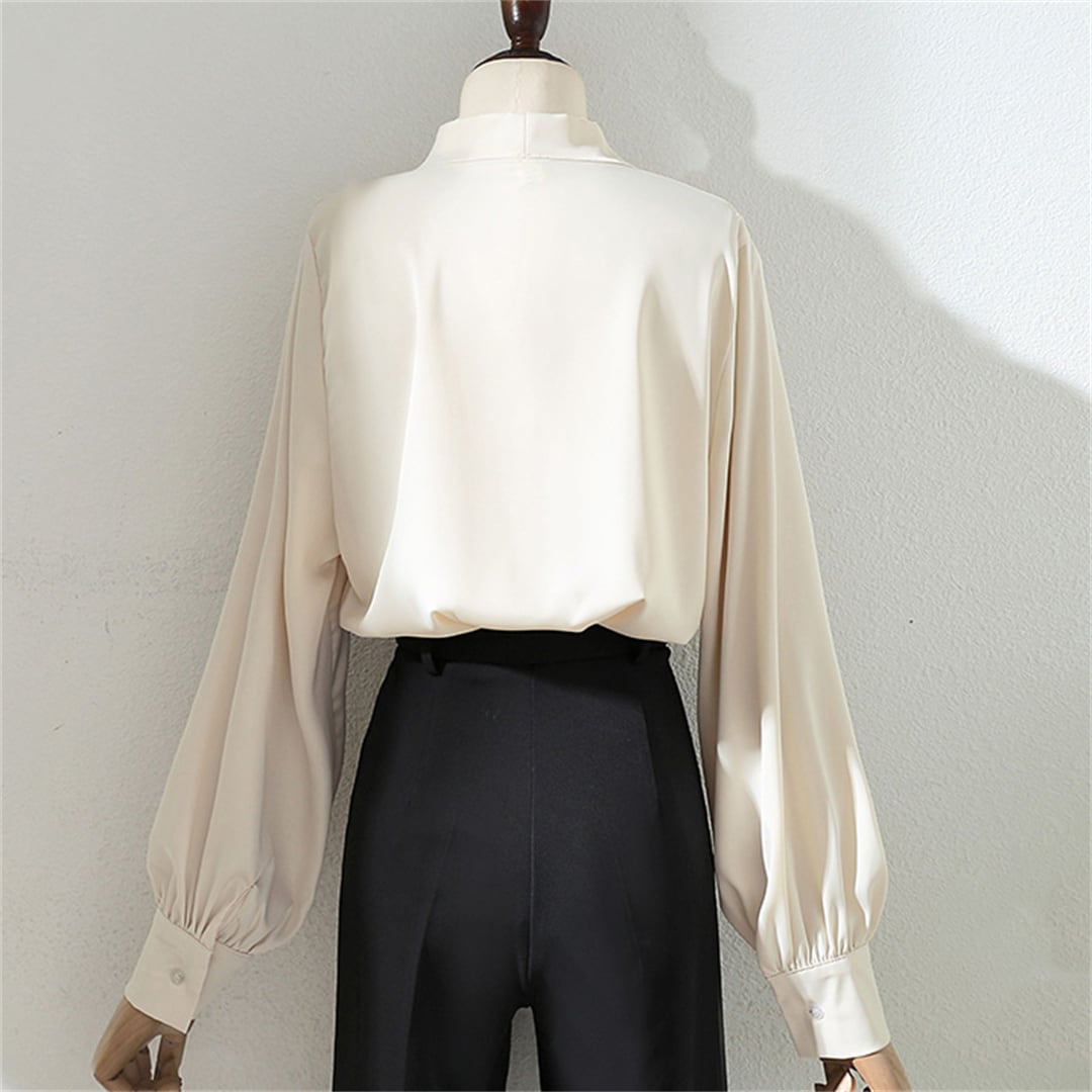 【清楚印象シリーズ】トップス シャツ · ブラウス 通勤 5色展開 長袖 半袖 アプリコット ブラック S M L XL