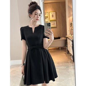 【夕暮薔薇シリーズ】ワンピース 無地 レトロ Aライン ブラック S M L XL