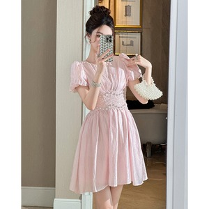 【夕暮薔薇シリーズ】ワンピース パフスリーブ スウィート Aライン ピンク M L XL