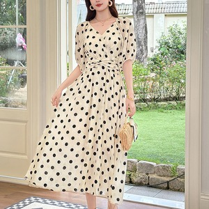 【夕暮薔薇シリーズ】ワンピース ドット柄 Vネック 水玉 気質溢れる S M