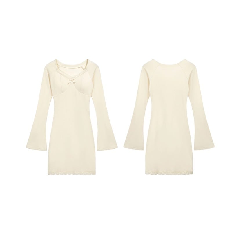 ✿2025秋新作✿ワンピース レース スピーカースリーブ 無地 ベージュ S M L
