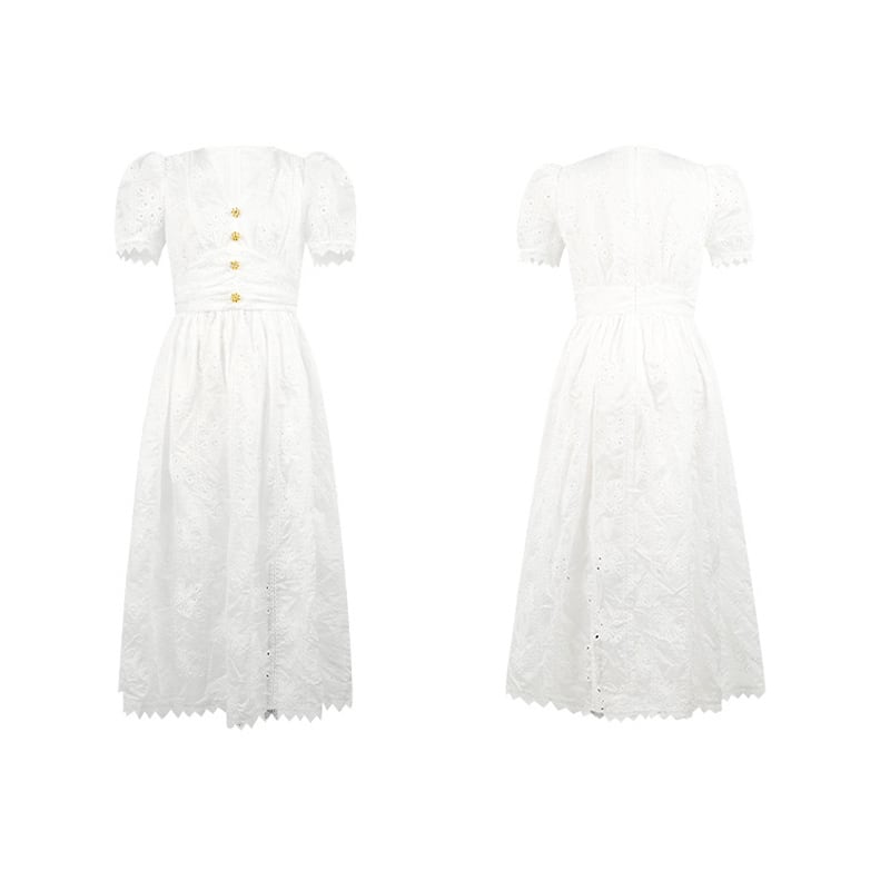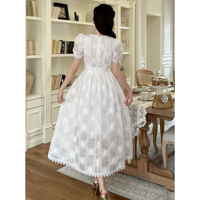 【夕暮薔薇シリーズ】ワンピース レース ウエストシェイプデザイン エレガント ホワイト S M L XL