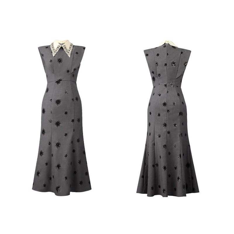 【夕暮薔薇シリーズ】ワンピース ノースリーブ フィッシュテール スパンコール グレー S M L XL